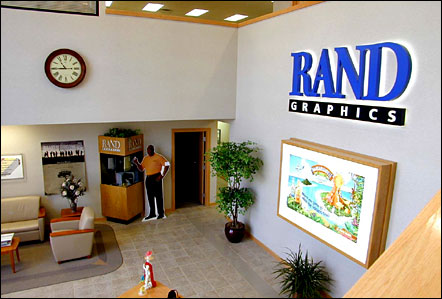 Designed by Architect David Haines, this building features a new two-story glass entry and accompanying lobby area. Rand’s corporate offices and a portion of their commercial printing and bindery facilities operate out of this location.